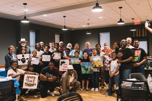 For three nights about 25 participants (a) talked about what it means to be an African American male in Springfield and America (b) worked with SJSA staff and experienced quilters to translate the ideas and emotions sparked by those discussions into visual images imprinted onto quilt squares and (c) created artist statements expressing what their squares meant to them (images above and on left provided by The Outlet). Each of the young men were given a copy of the book “Stitching Stolen Lives” authored by one of our SJSA partners (image below provided by The Outlet) and a picture of themselves with their square.