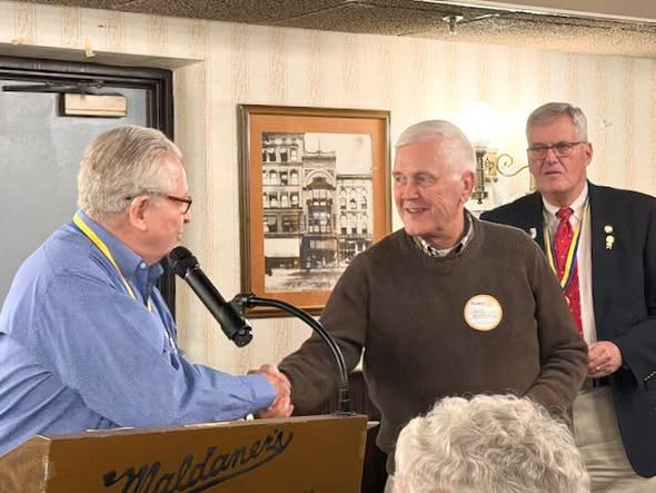 Larry Golden's presentation on the renowned Illinois Innocence Project provided the perfect launch for our Club's first lunch meeting at Maldaners Upstairs on February 16. We extended a warm welcome to longtime-friends Larry and Yosh Golden. Yosh was a long-time member of our Rotary Club, and Larry often accompanied her at our meetings. They generously continue to participate in our Rotary Citrus Fundraiser. This special lunch meeting attracted a full house of club members and guests and was open to visitors.