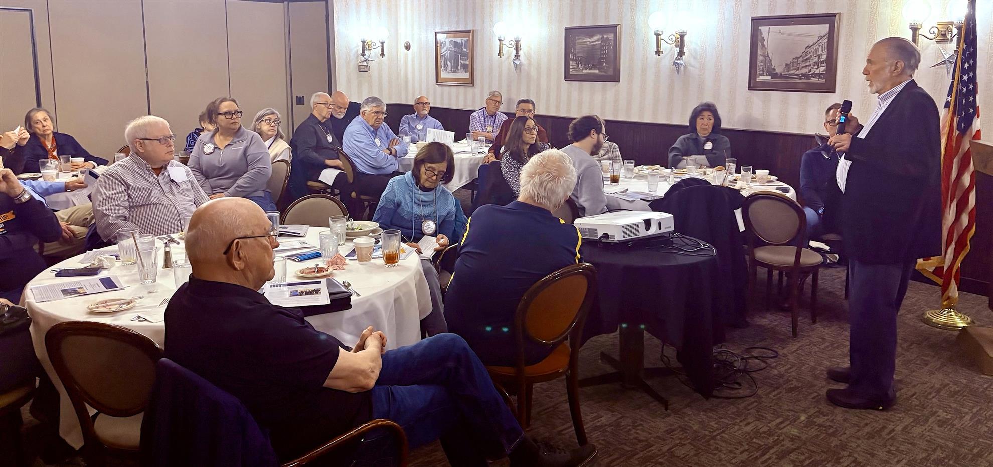 On February 16th, we held our first-ever lunch meeting at Maldaners Upstairs, drawing a full room of members and guests. Larry Golden (image below) delivered a compelling presentation on the Illinois Innocence Project at UIS, which he founded in 2001. He highlighted the Project’s 33 exonerations and its innovative Wrongful Conviction Awareness and Avoidance Program that trains police cadets statewide. The program was both sobering and inspiring, and the success of this inaugural lunch meeting marks an exciting expansion in how and when we gather and appeal to prospective members.