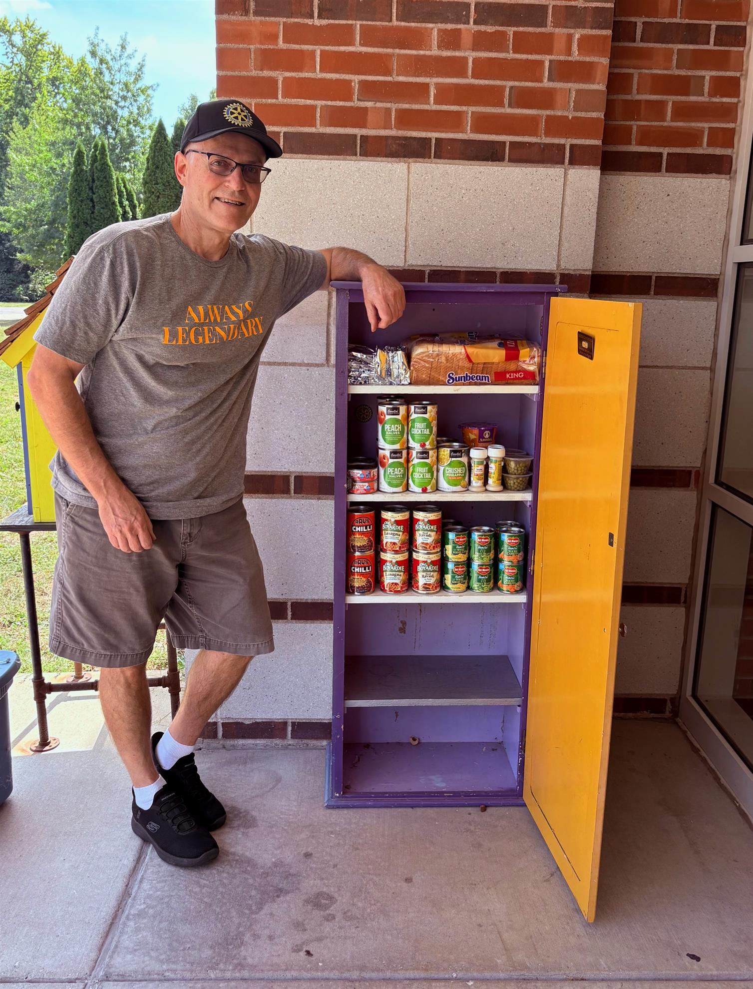 The image below shows President John Webb after stocking the Ridgely School Micropantry on September 30, 2025. John noted that when he arrived, the pantry was empty except for 3 bottles of spices. We thank John for stocking the pantry during the last two weeks of September, 2025. If you haven't signed up for a shift, you can sign up using the link in the article by Community Services Director Ken Gilmore in this Newsletter.
